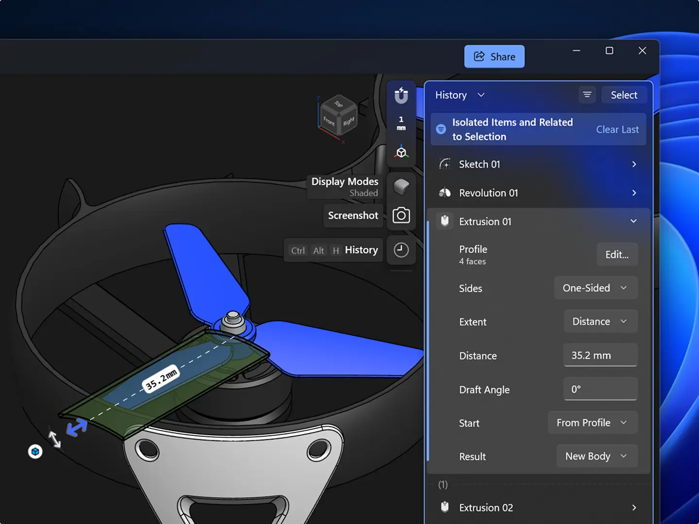 Combine the speed of direct modeling with the robustness of parametric history. Shapr3D adapts to your process, giving you the flexibility to switch between moodeling moves effortlessly.