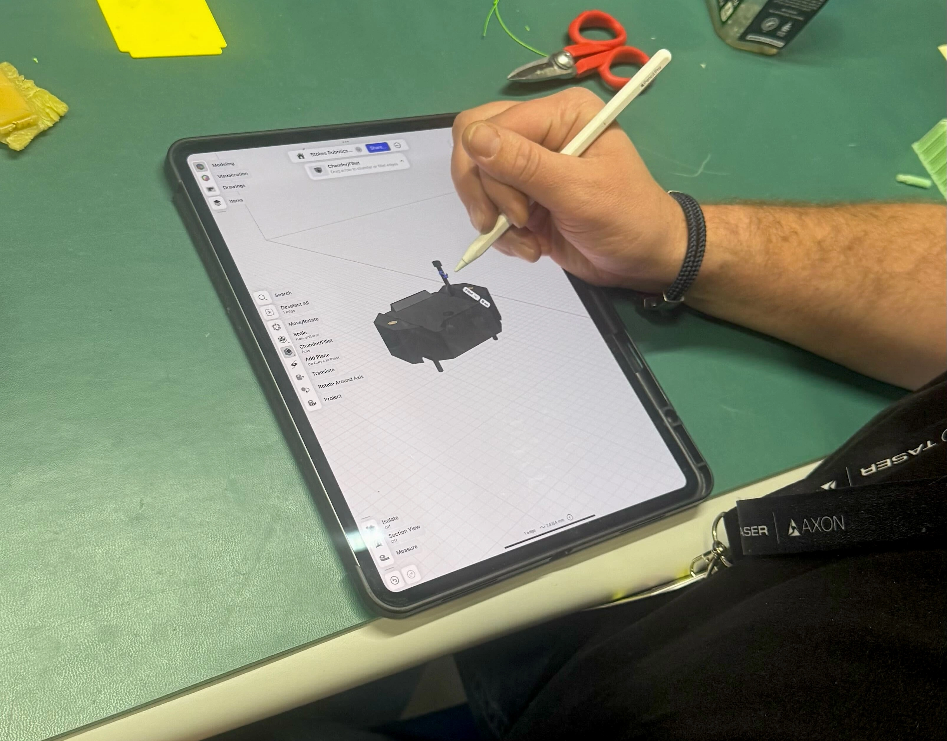 Other engineering teams at Axon have noticed. Groups that typically take a day or two to cycle through CAD revisions are looking at Shapr3D because they see how quickly Daniel moves from first idea to prototype.