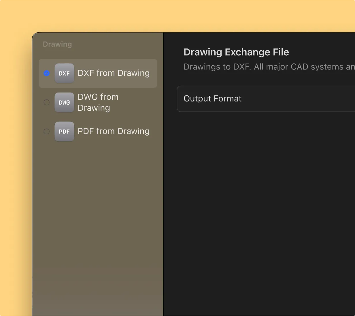 Shapr3D allows you to export your 2D drawings in the most widely used industry formats: